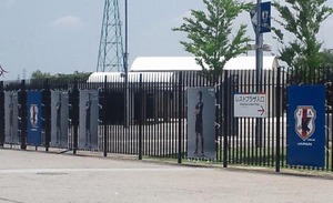 埼玉スタジアムに飾られていた香川と代表エンブレムのポスターが3日の試合後になくなっていた