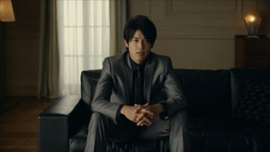 CMでは、いつものユニフォーム姿を封印し、シックなグレーのスーツで出演。
