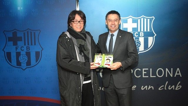 選手たちが“のび太”と合唱し、出迎えたのはバルセロナの会長ジョゼップ・マリア・バルトメウ氏だった。