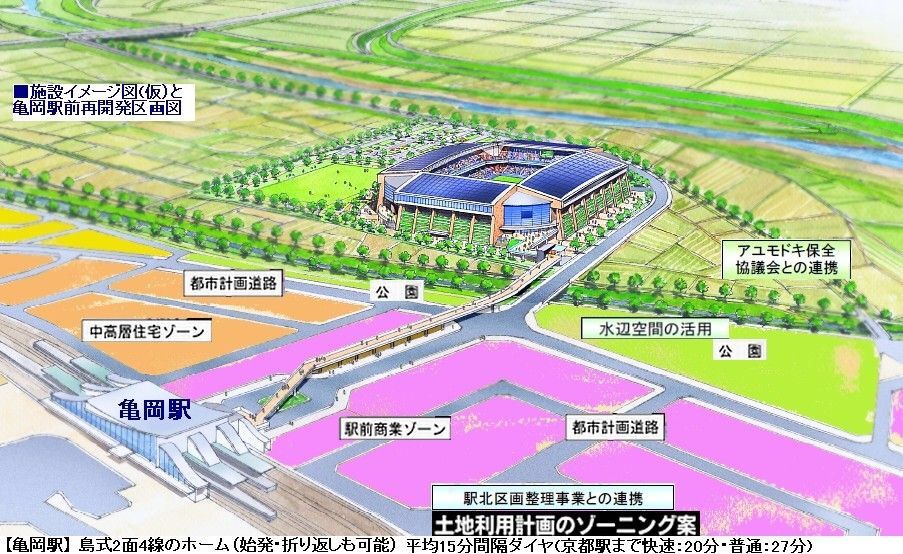 亀岡市と連携し、脆弱な状況にあるアユモドキの生息環境の早期改善と、スタジアム建設を望むアユモドキの保全活動を行う地域住民や、