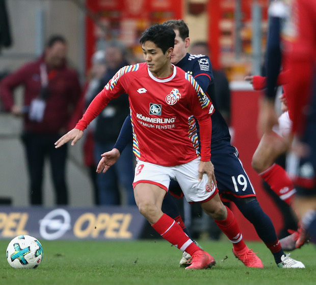 マインツでは日本代表と同じ4-2-3-1の1トップに加え3-1-4-2の2トップでも起用される日本人FWは、青年監督のサンドロ・シュバルツが掲げる“ゲーゲンプレス”の急先鋒として前線からハードワークして高い位置からのボール奪取を助け、速攻主体の攻撃でシンプルなポストプレーと鋭い飛び出しを精力的に繰り返している。